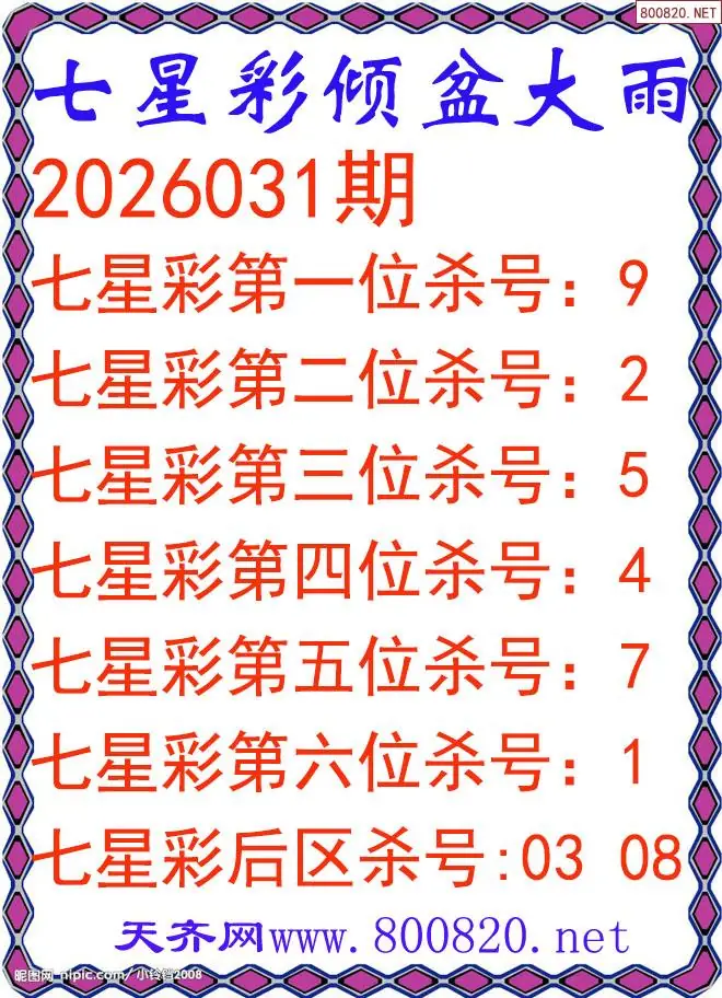 倾盆大雨26年031期七星彩杀号图谜