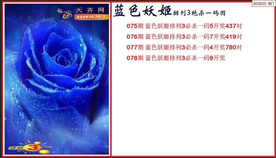 2026年蓝色妖姬078期排列3绝杀一码图(原创)