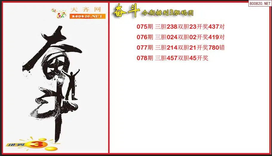 奋斗2026078期今期排列3胆码图(原创)