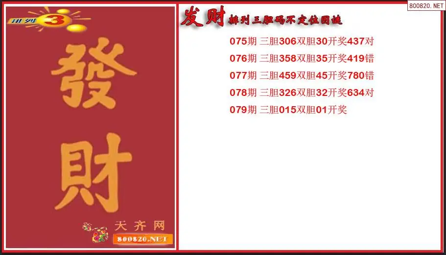 发财排列三2026079期胆码不定位图谜(原创)