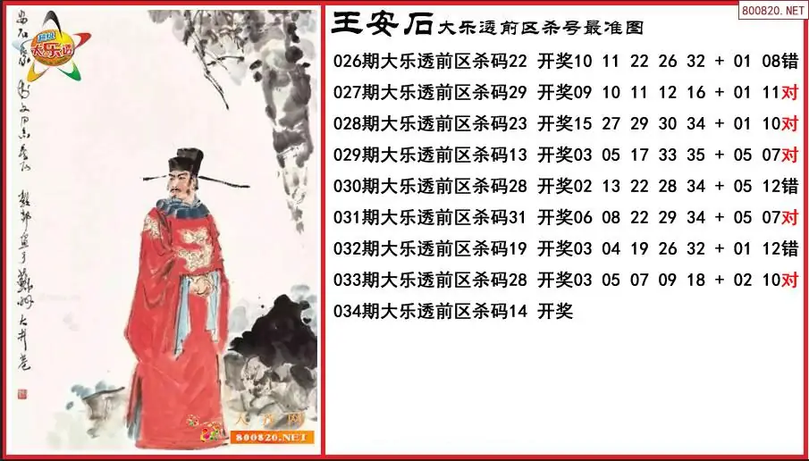 王安石2026034期大乐透前区杀号最准图-原创