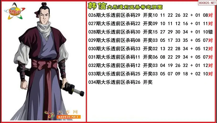 韩信2026034期大乐透前区杀号定胆图-原创