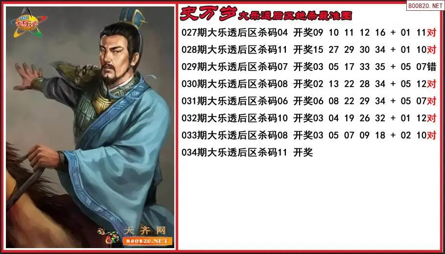 史万岁2026034期大乐透后区绝杀最准图-原创