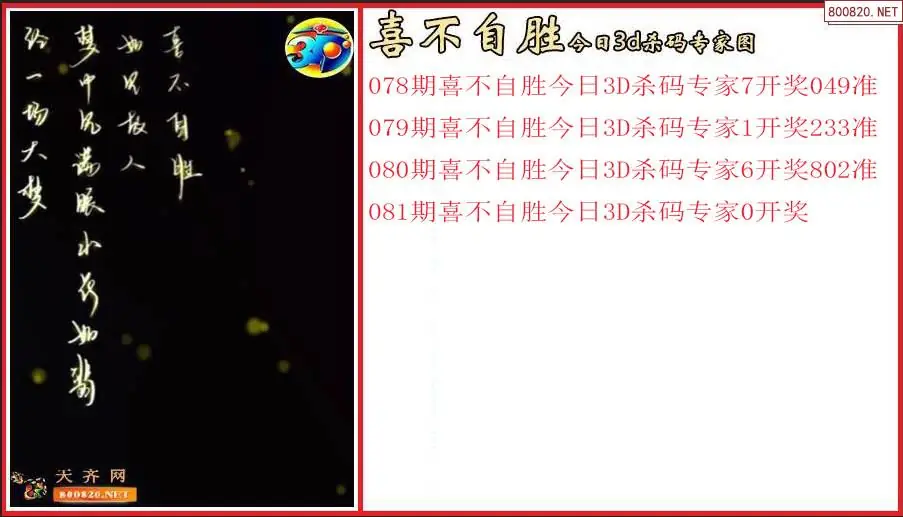 喜不自胜2026081期今日3d杀码专家图(原创)