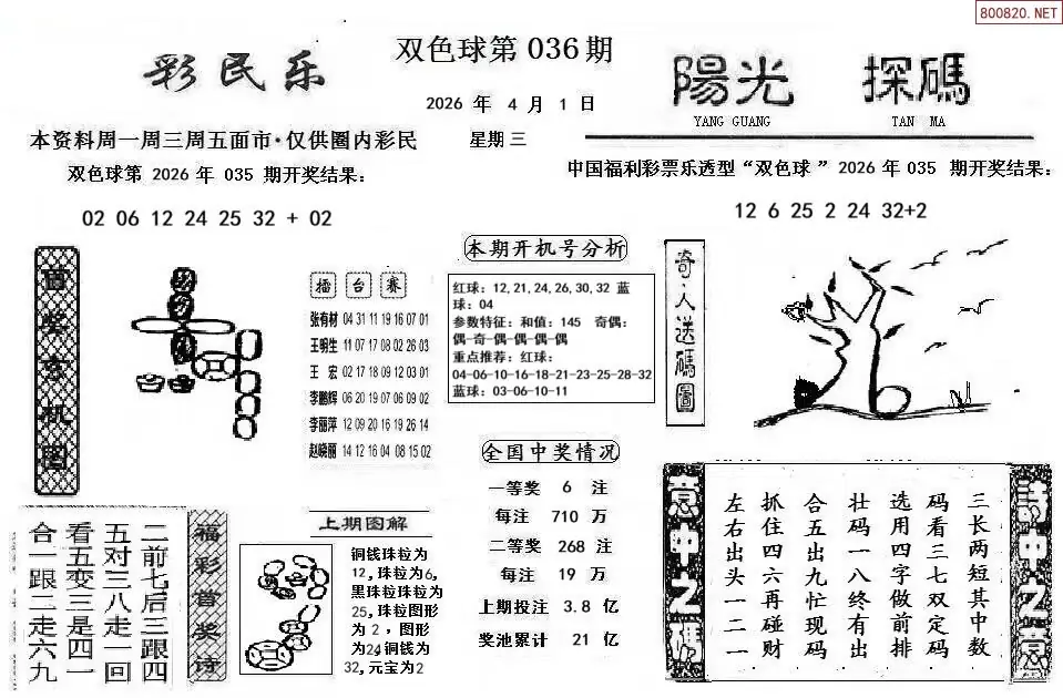 20 26年036期双色球南海神尼预测诗
