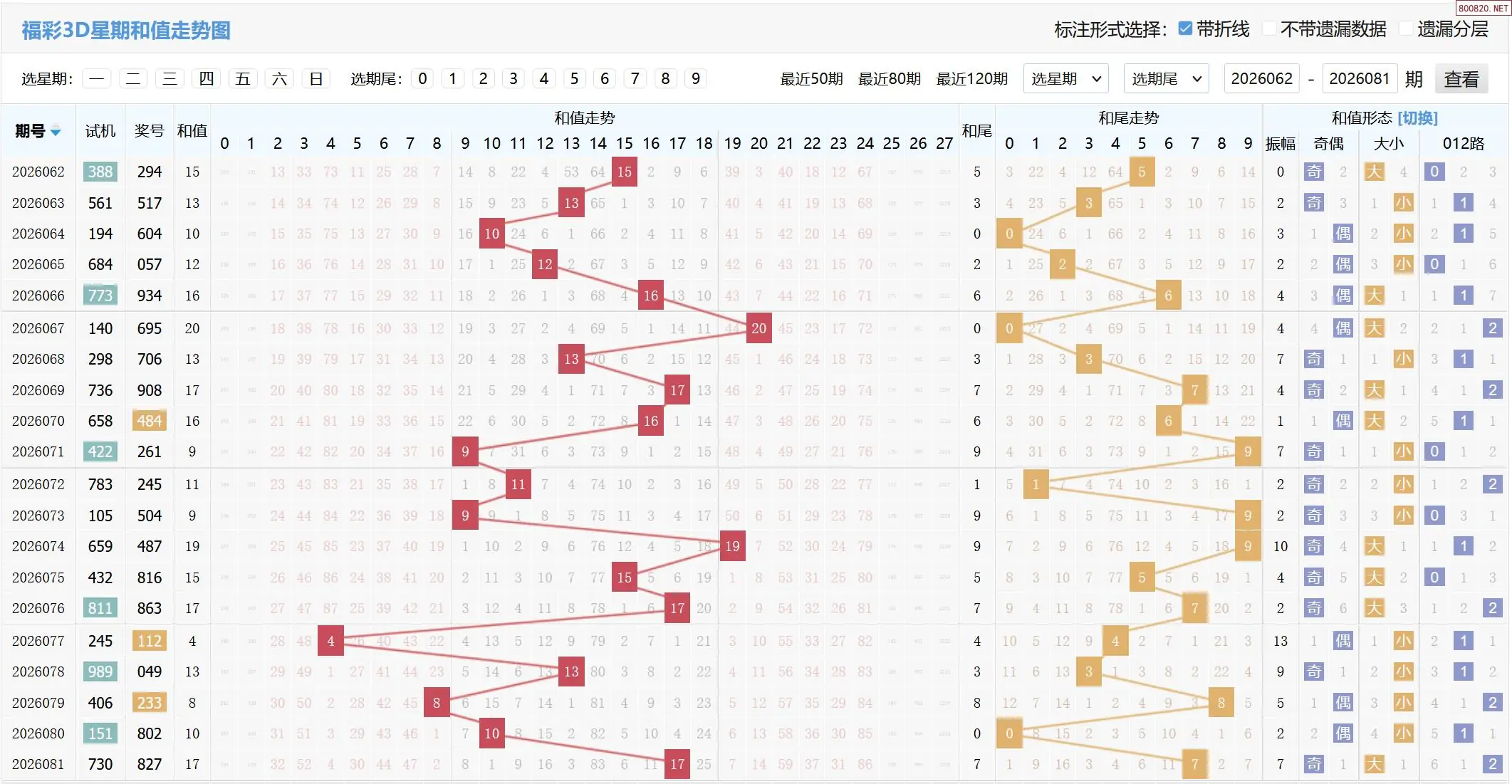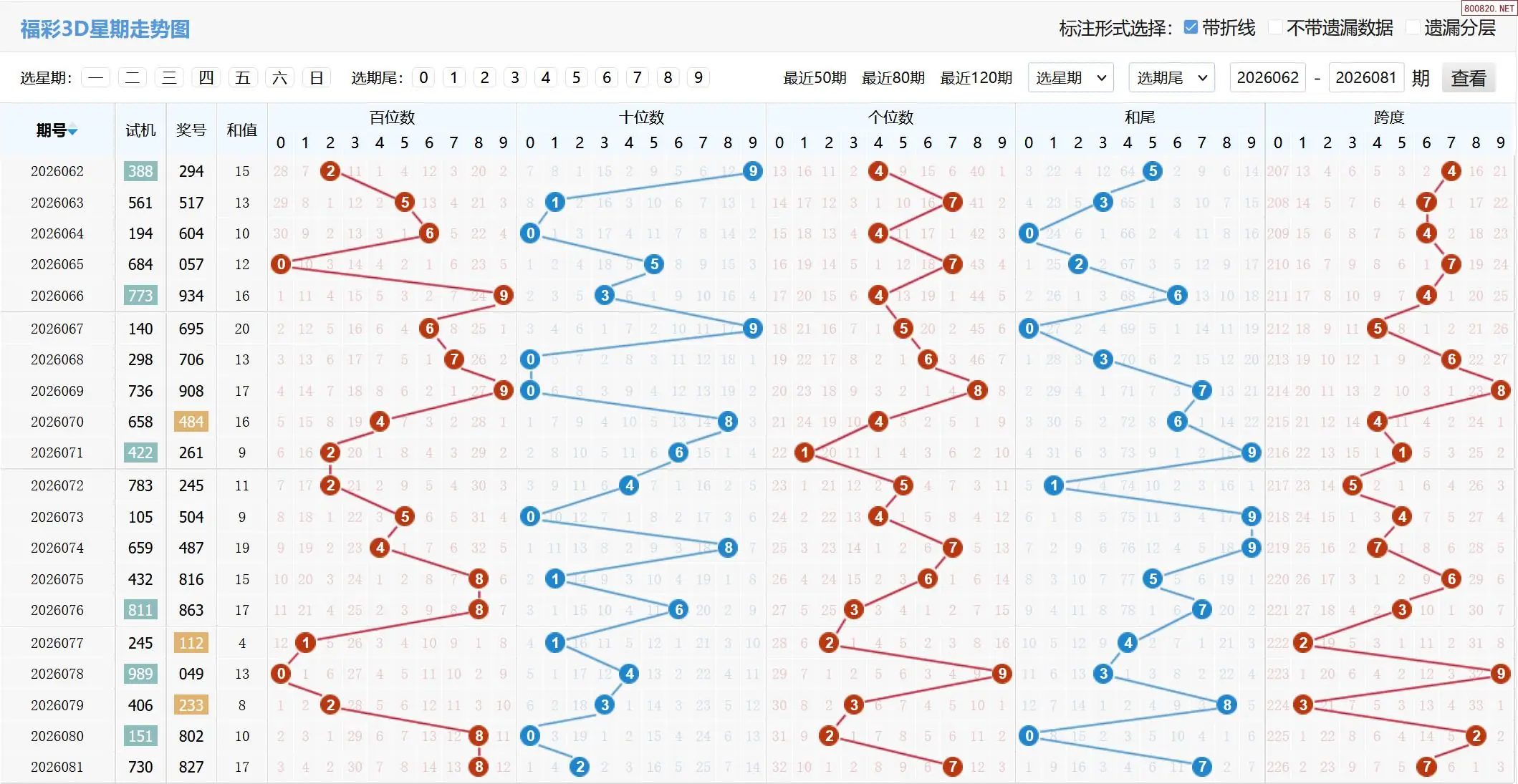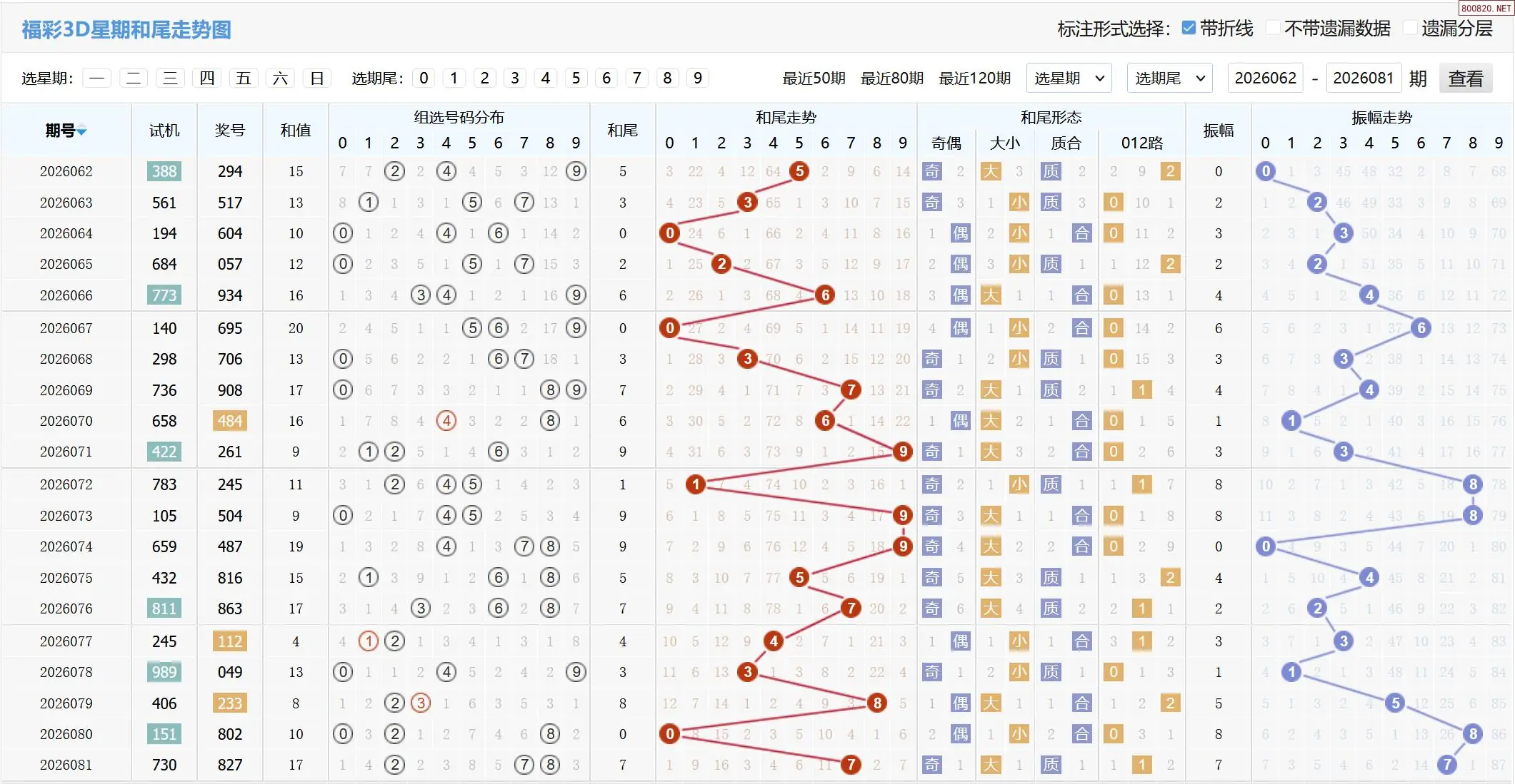 2026082期福彩3D基本走势图如下:
