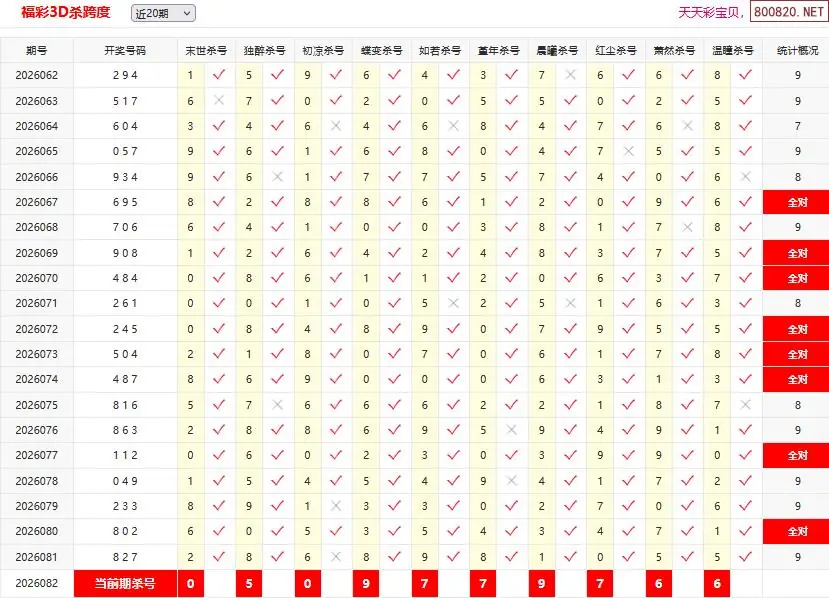 26082期彩宝贝福彩3D杀跨度