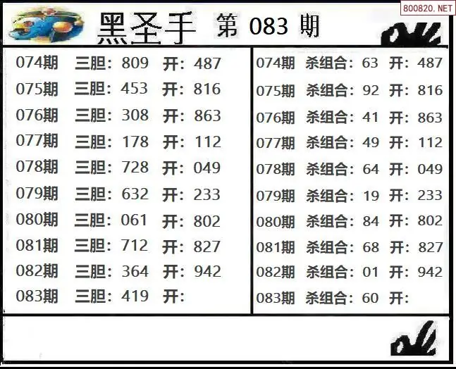 圣手图26083期黑圣手三胆+杀组合图谜