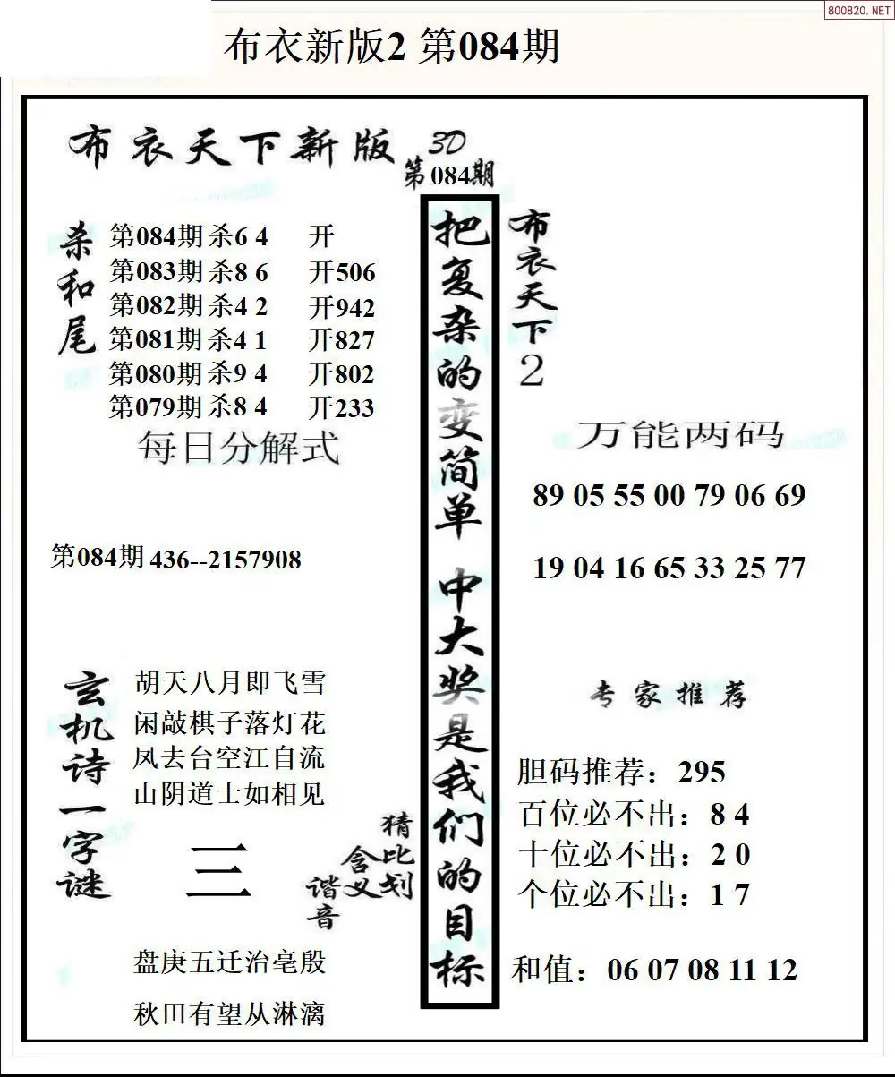26084期新版3d布衣天下1234