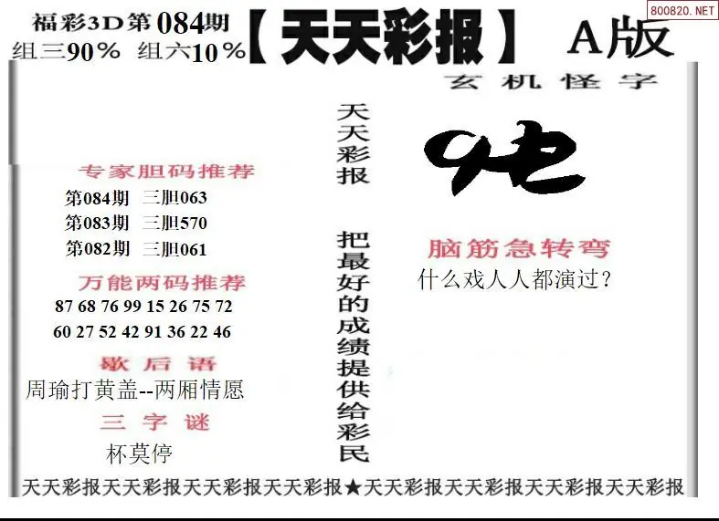 26084期福彩3D天天彩报A版 天天彩报B版
