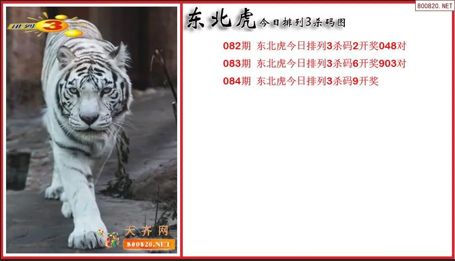 2026084期东北虎排列3通杀一码图(原创)