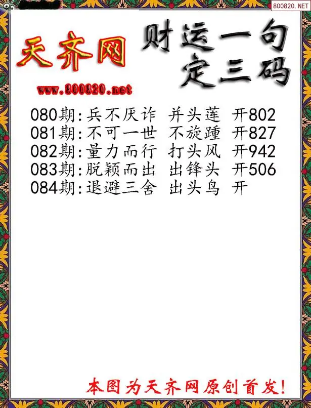 084期财运3D一句定三码字图谜