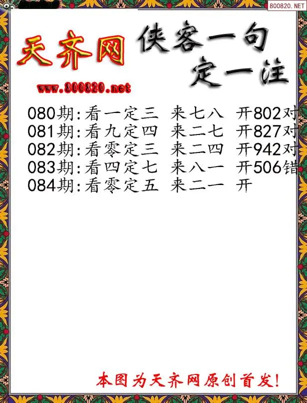084期侠客一句3D定三码字图谜
