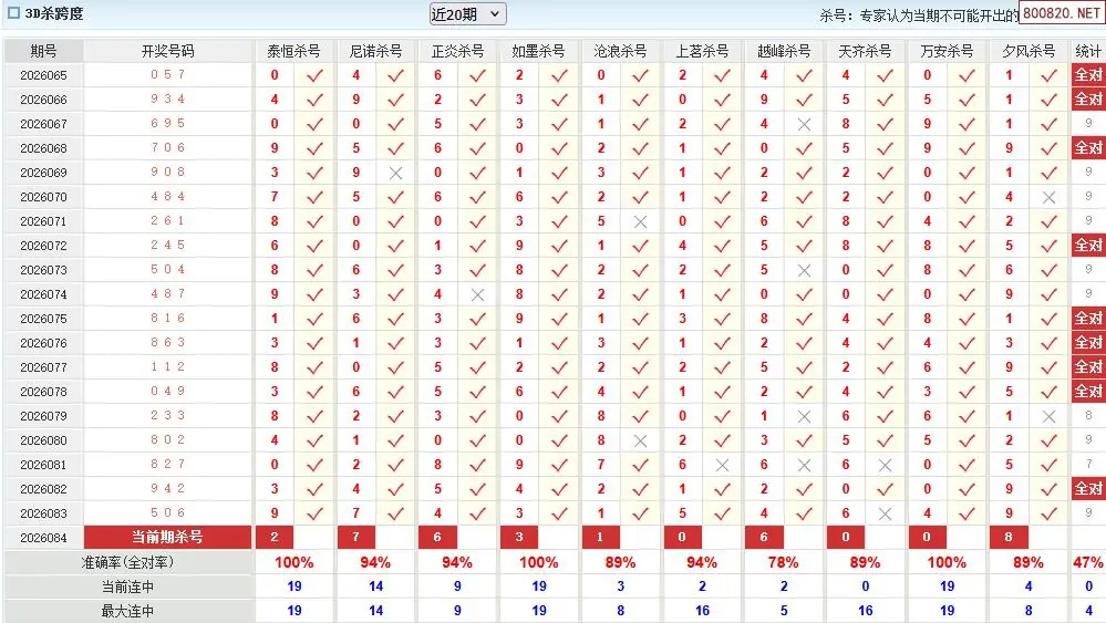 福彩3d26年084期澳客专家杀跨度