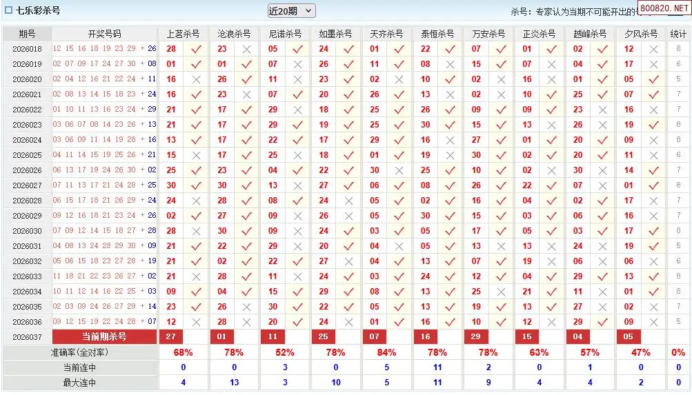 2026037期澳客七乐彩专家杀号