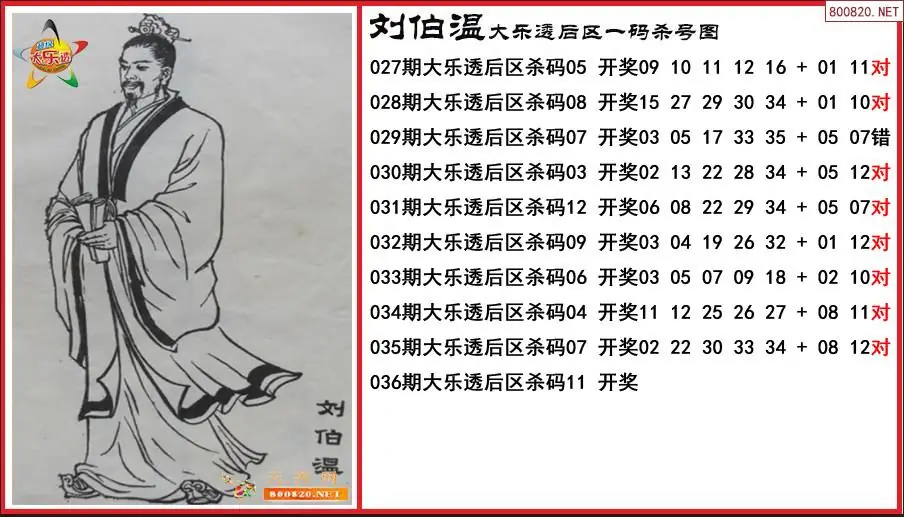 刘伯温2026036期大乐透后区一码杀号图-原创