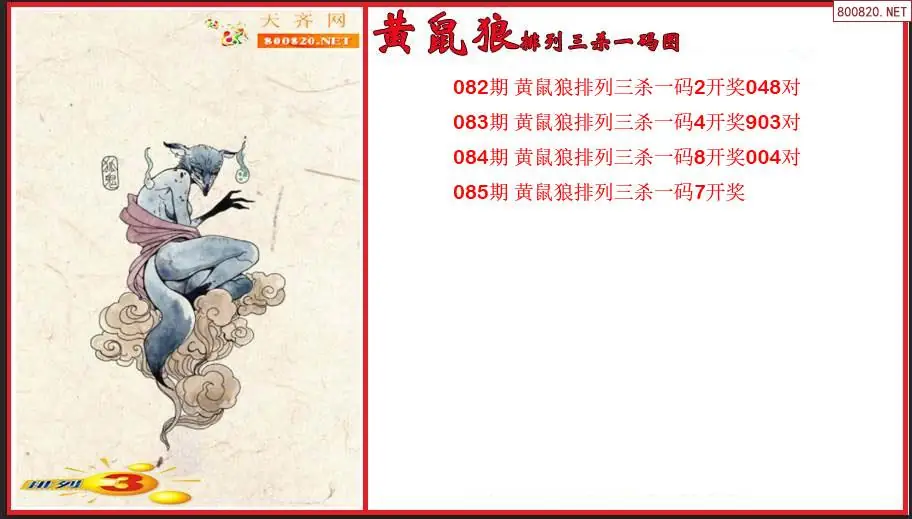排列3第2026085期黄鼠狼杀一码图(原创)