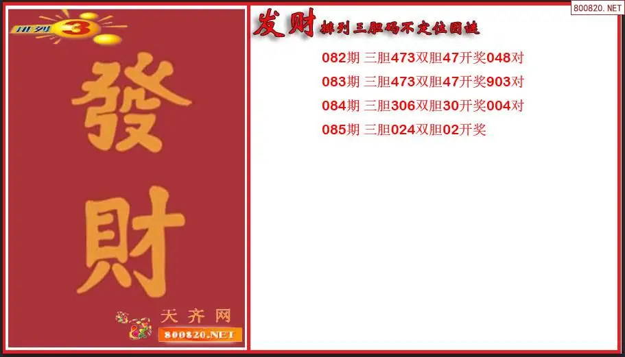 发财排列三2026085期胆码不定位图谜(原创)