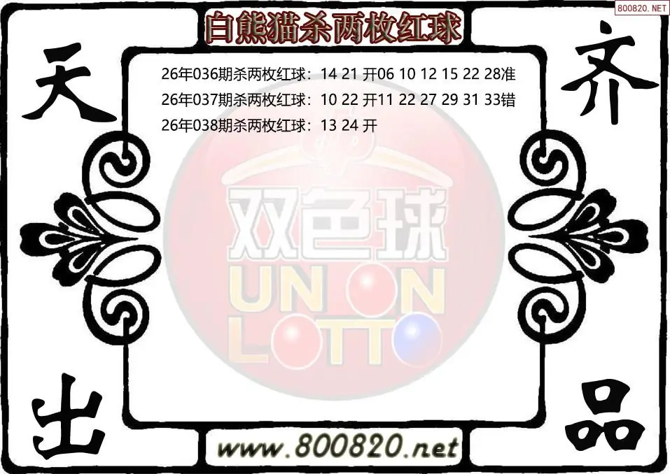 白熊猫26年038期双色球杀两枚红球图谜