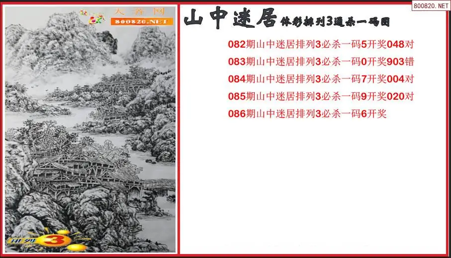 2026086期山中迷居体彩排列3通杀一码图(原创)