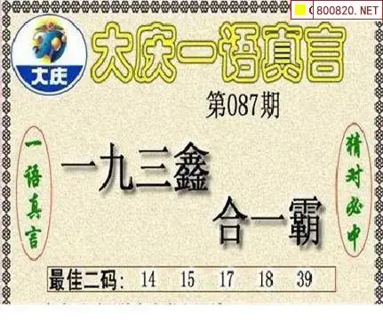 大庆图26087期大庆五码+一语真言黑胆3d图谜