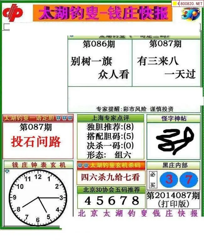 钱庄报26087期钱庄快报一句定三码图谜