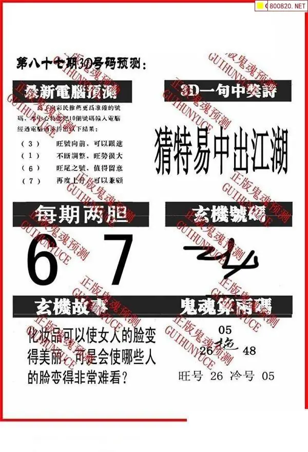 鬼魂图26087期一句中奖诗+鬼魂预测图迷
