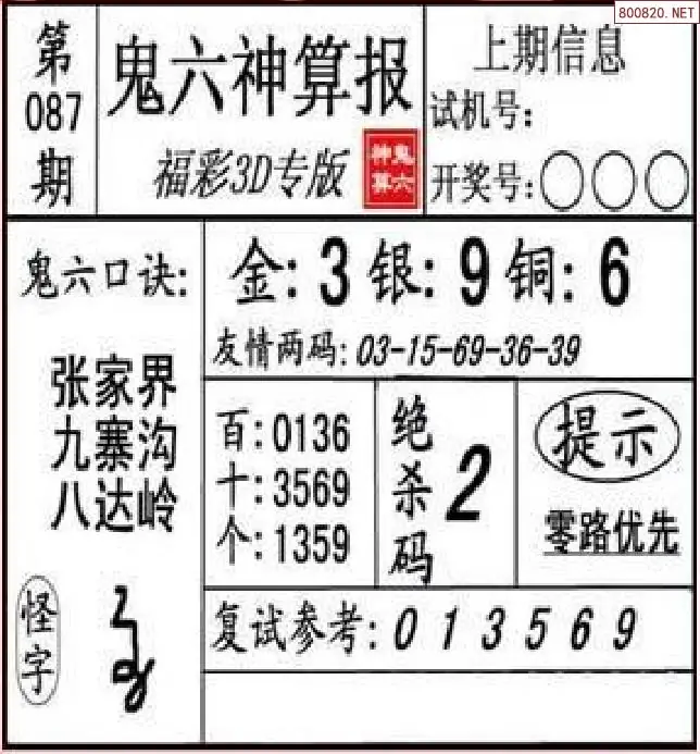 鬼六图26087期鬼六神算报+鬼六胆码图迷