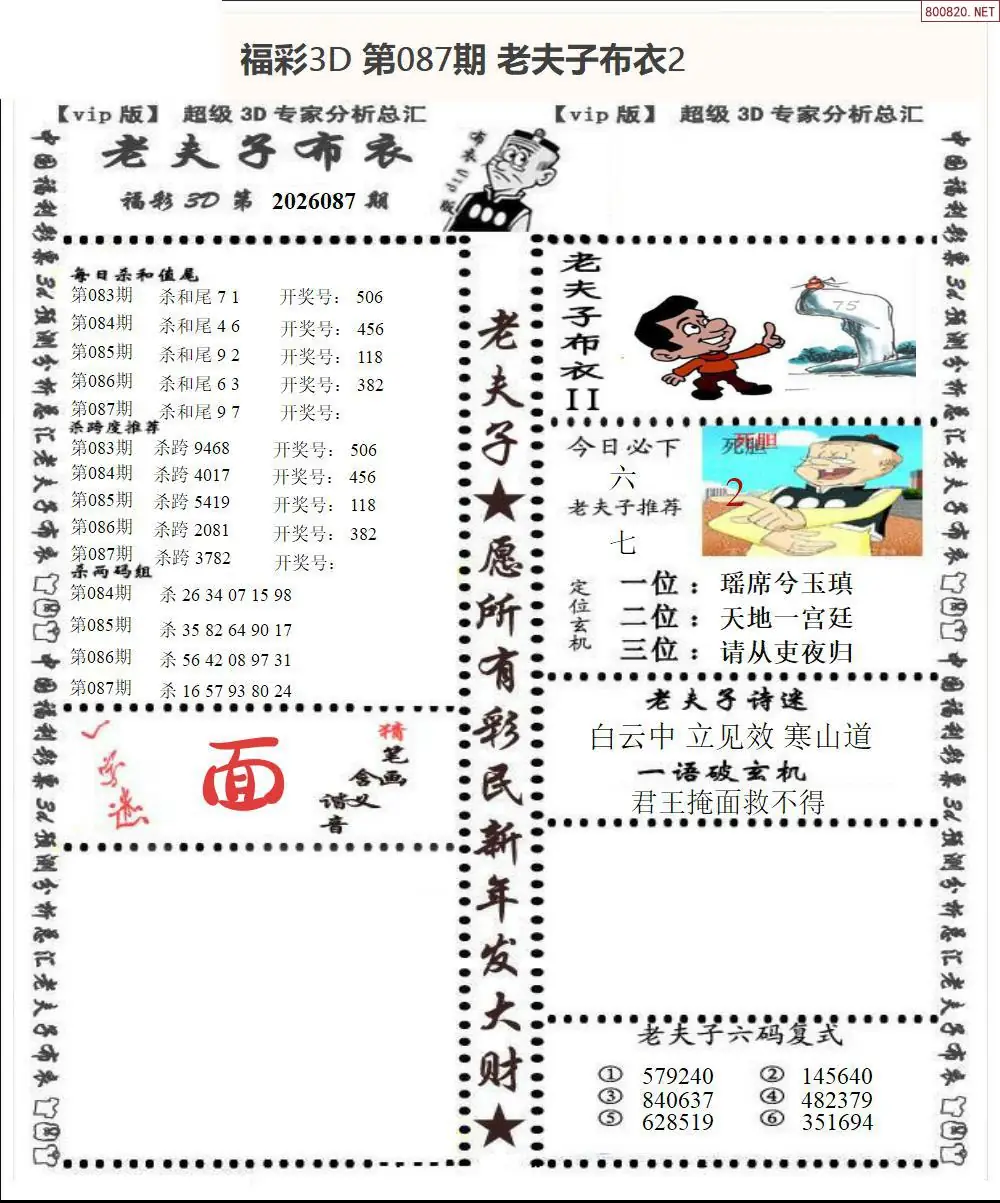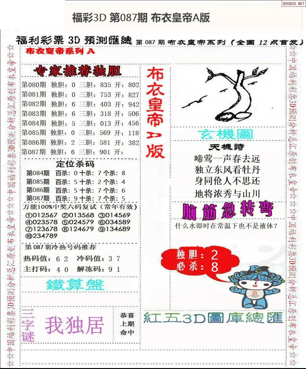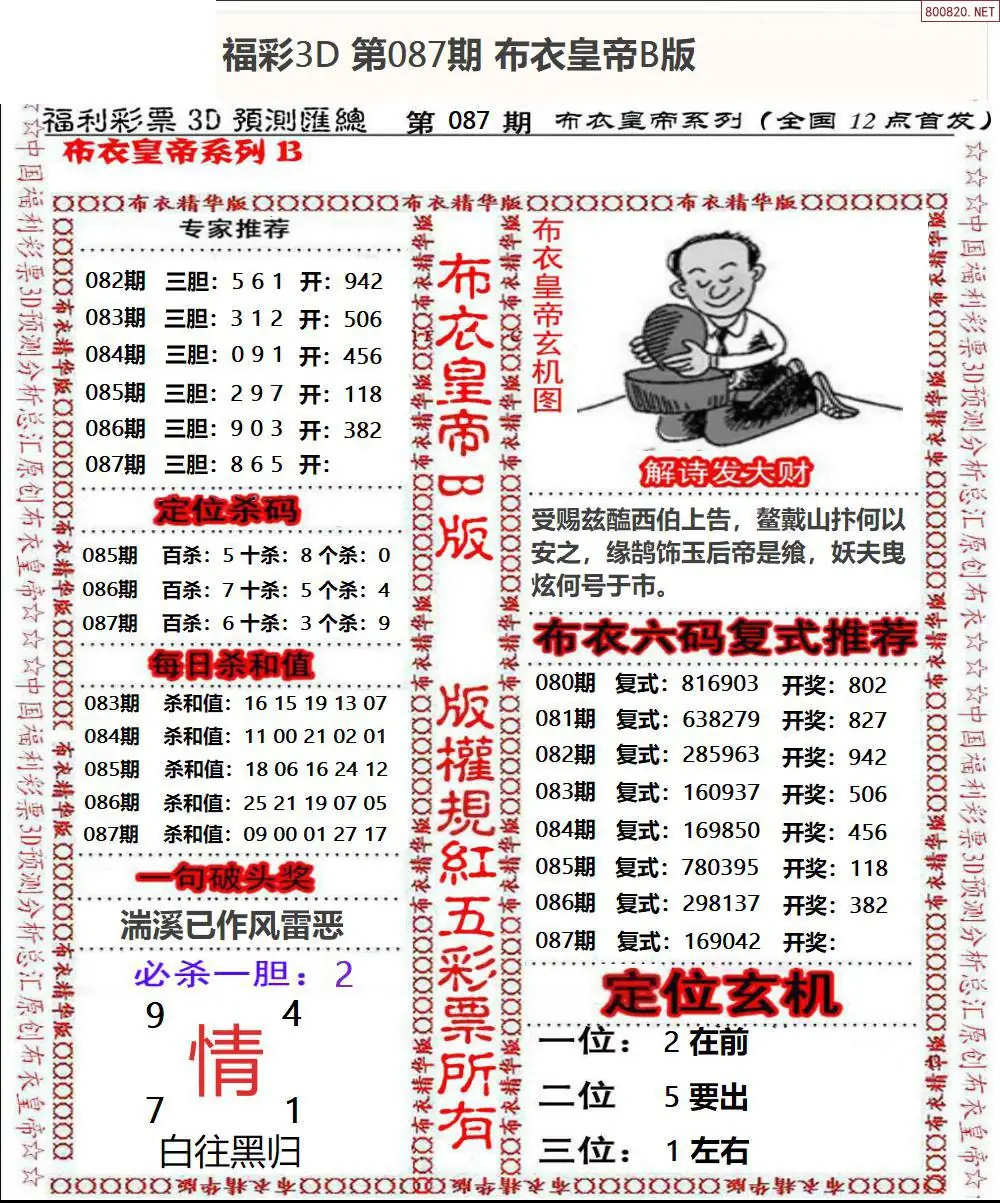 皇帝图26087期布衣皇帝+老夫子布衣3d图谜