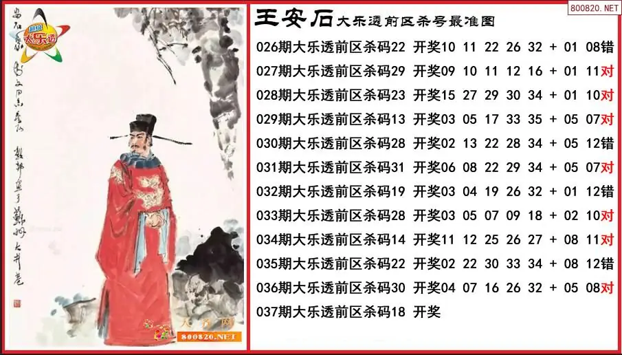 王安石2026037期大乐透前区杀号最准图-原创