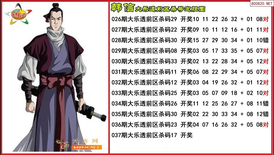 韩信2026037期大乐透前区杀号定胆图-原创