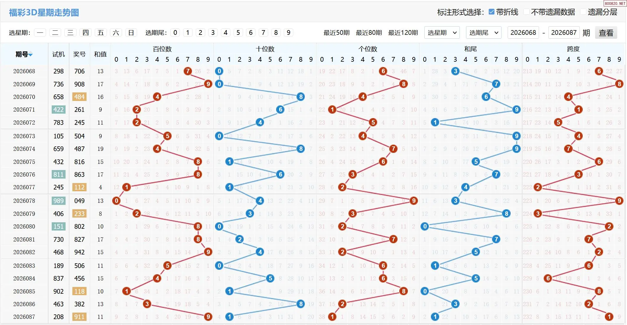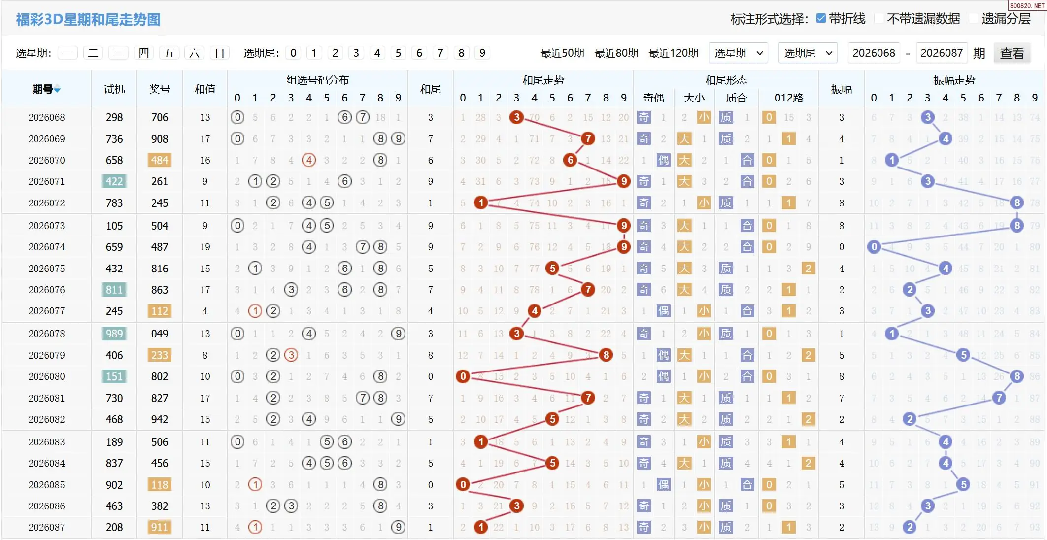 2026088期福彩3D基本走势图如下: