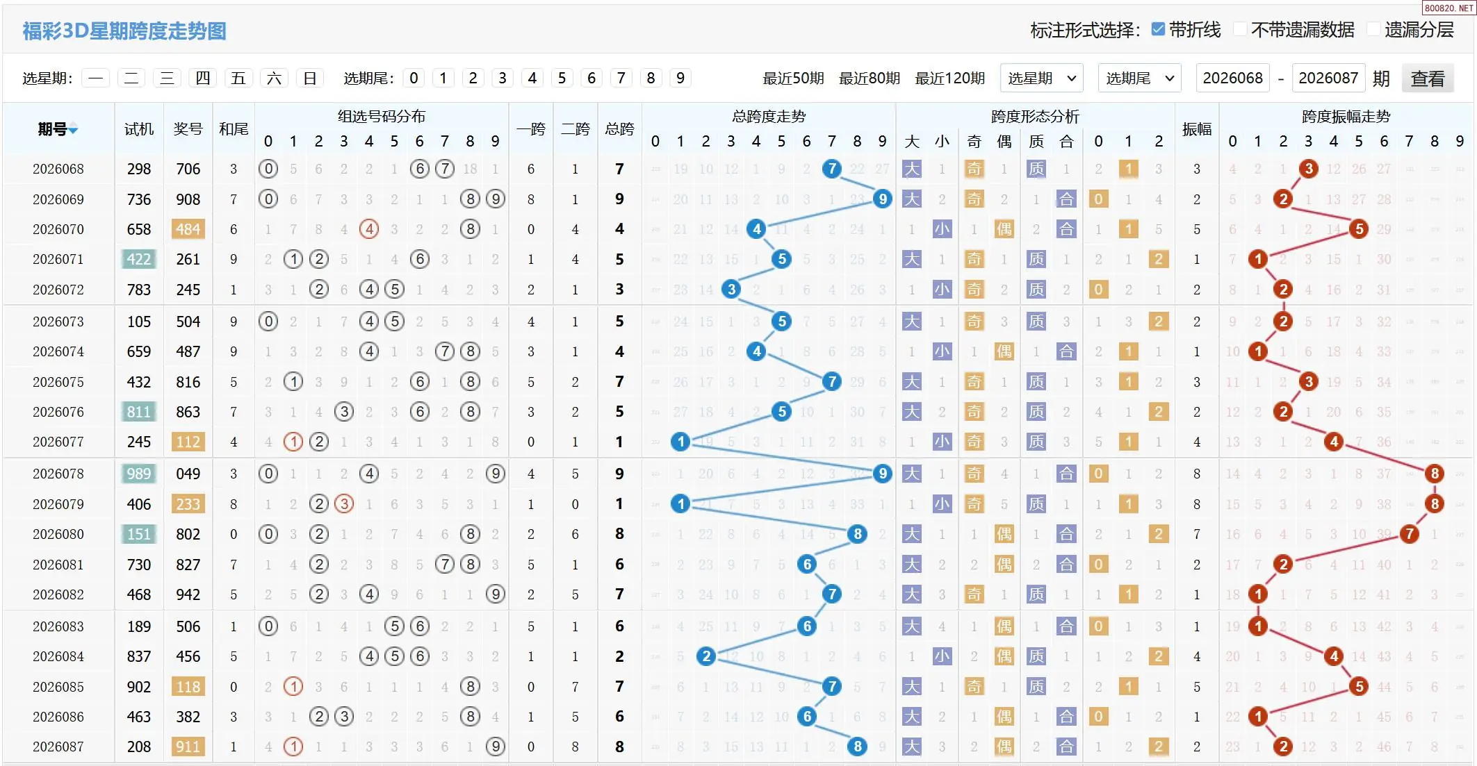 2026088期福彩3D跨度走势图如下: