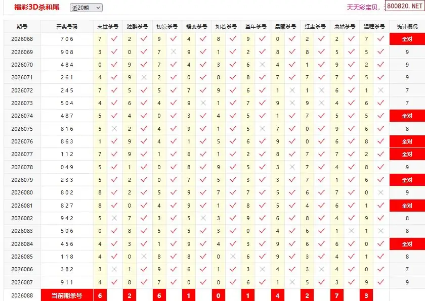 13 2026年福彩3D088期[截杀]杀两跨-原