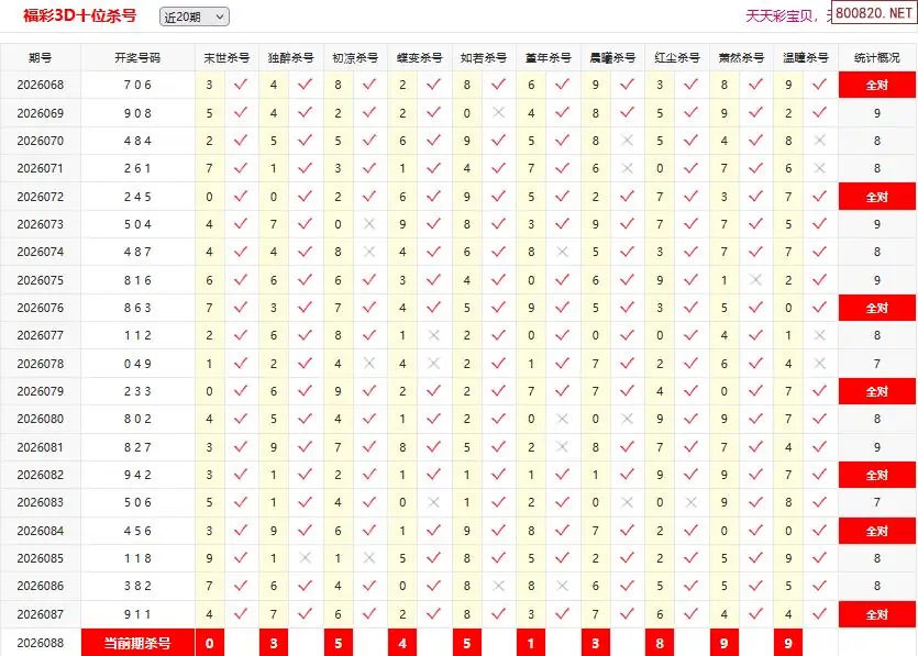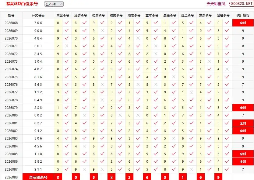 26088期彩宝贝福彩3D百十个位杀号