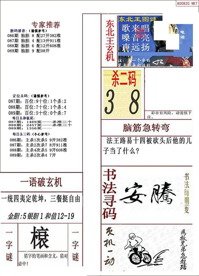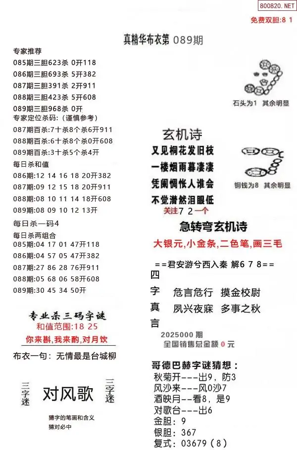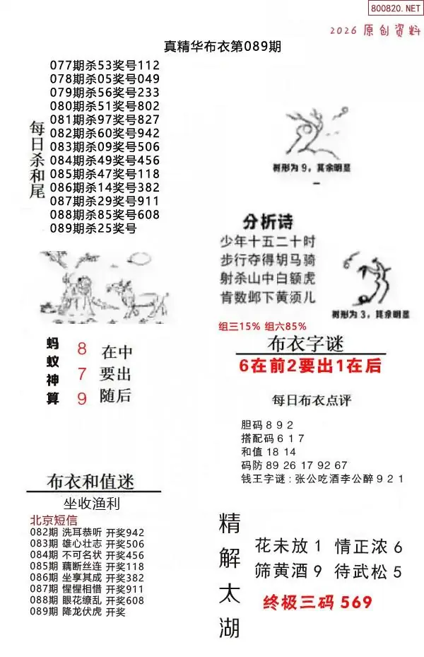 布衣图089期布衣定位杀+布衣神算图迷