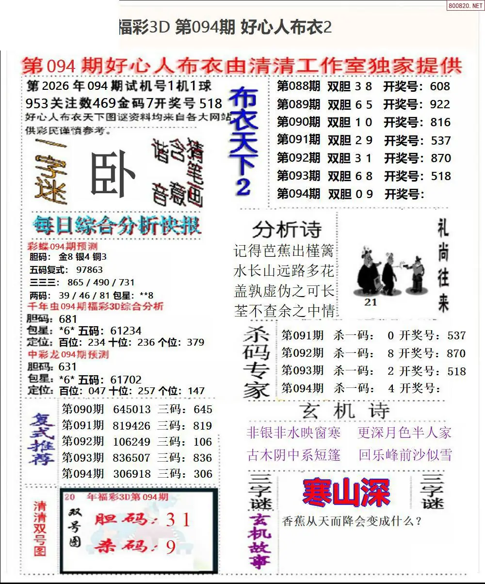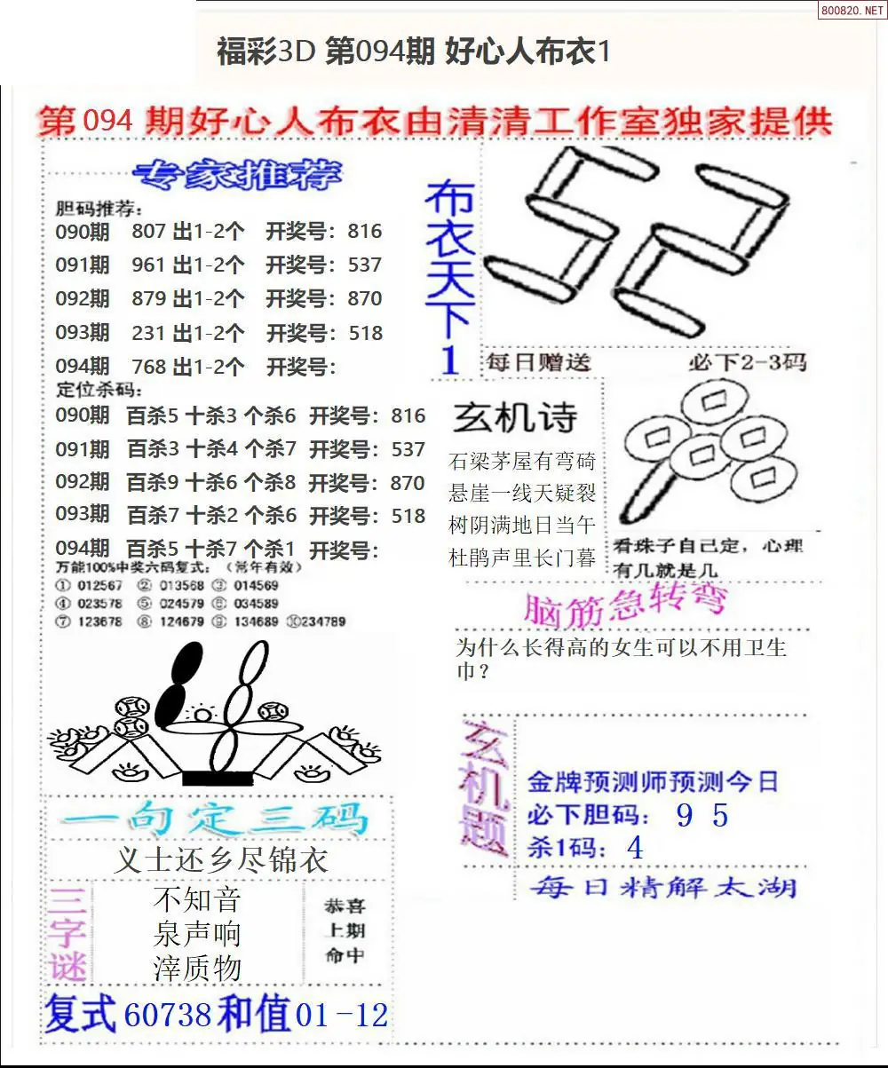 布衣图094期布衣定位杀+布衣神算图迷