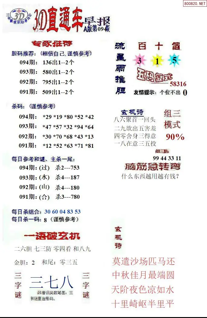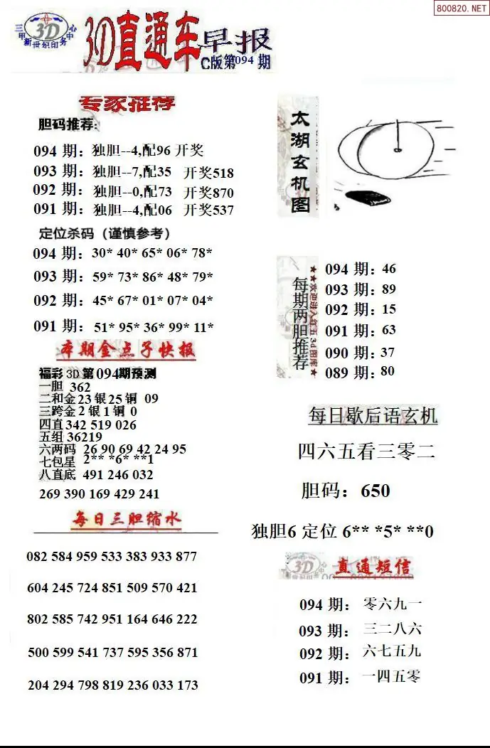 26年094期福彩3D直通车早报ABCD版
