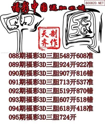 2026095期福彩中国福彩3d胆码图谜