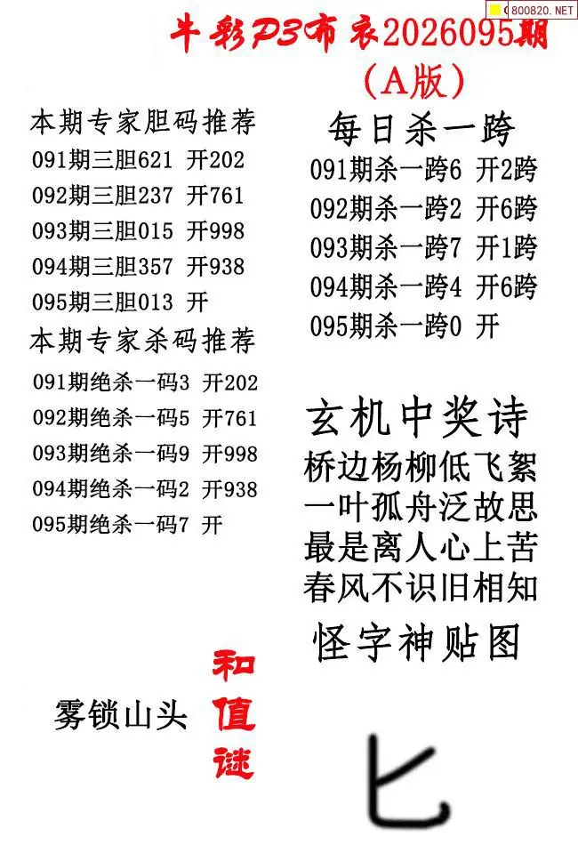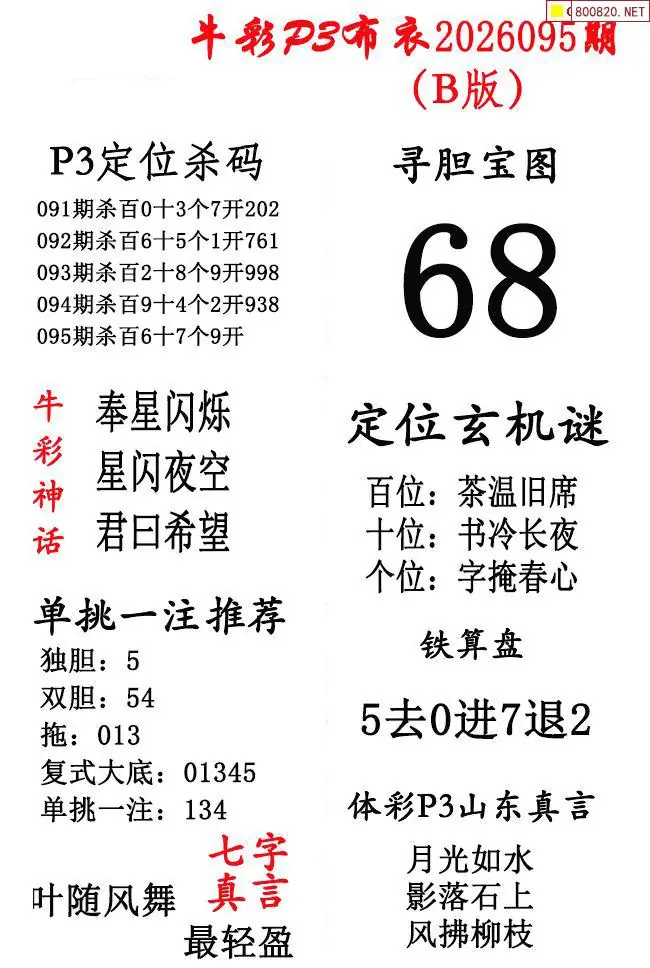 牛彩体彩P3布衣2026年095期AB版图谜(精华版)