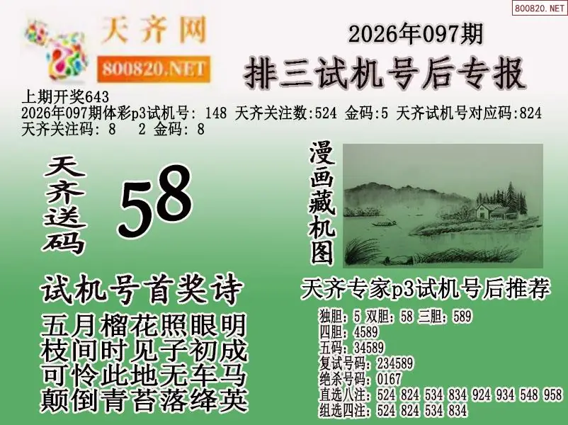 2026年097期体彩p3试机号后天齐网专报