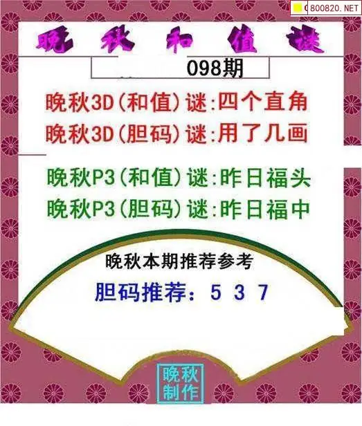 19 晚秋图26098期3d晚秋和值迷图谜版