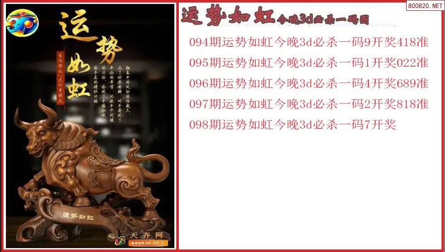 运势如虹2026098期今晚3d必杀一码图(原创)