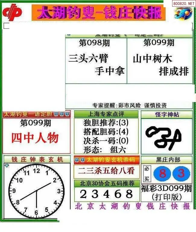 钱庄报26099期钱庄快报一句定三码图谜