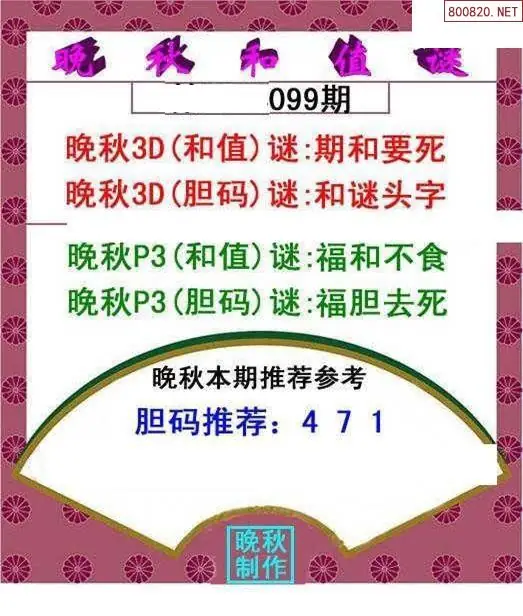 晚秋图26099期3d晚秋和值迷图谜版
