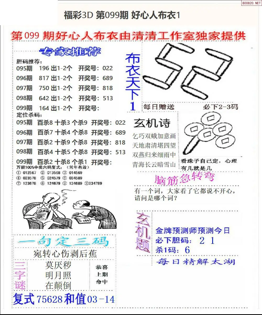 布衣图099期布衣定位杀+布衣神算图迷