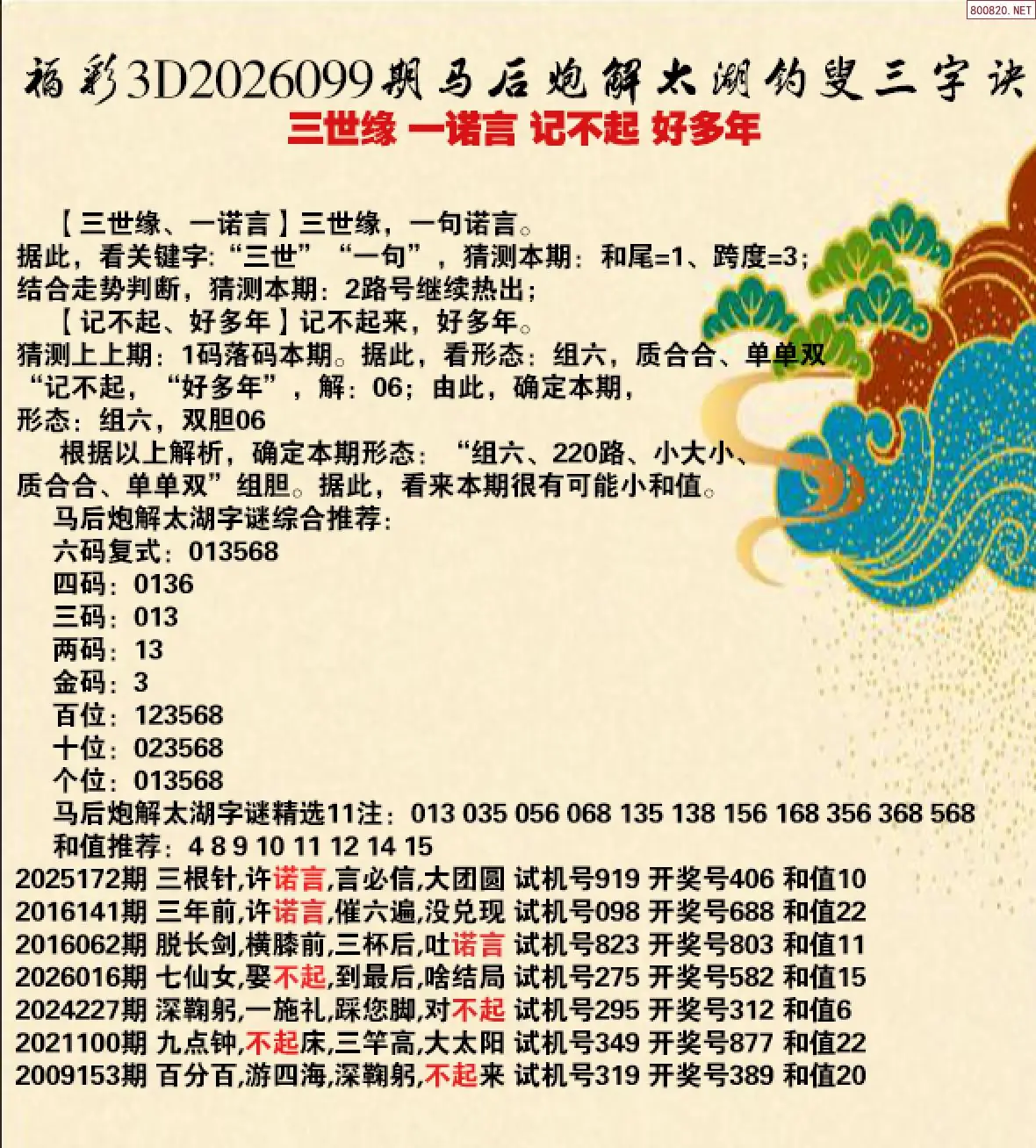 3 26年099期 3D专家解今日太湖字谜