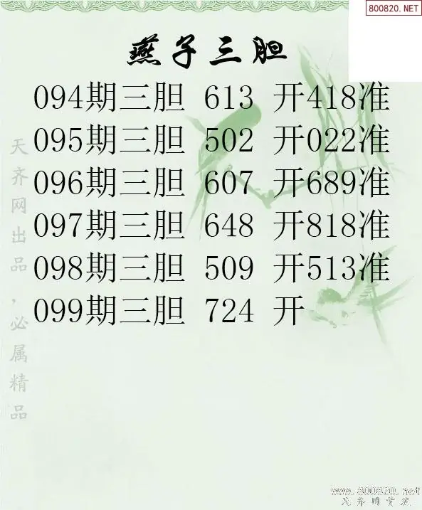 26099期燕子三胆3d胆码图谜-天齐原创