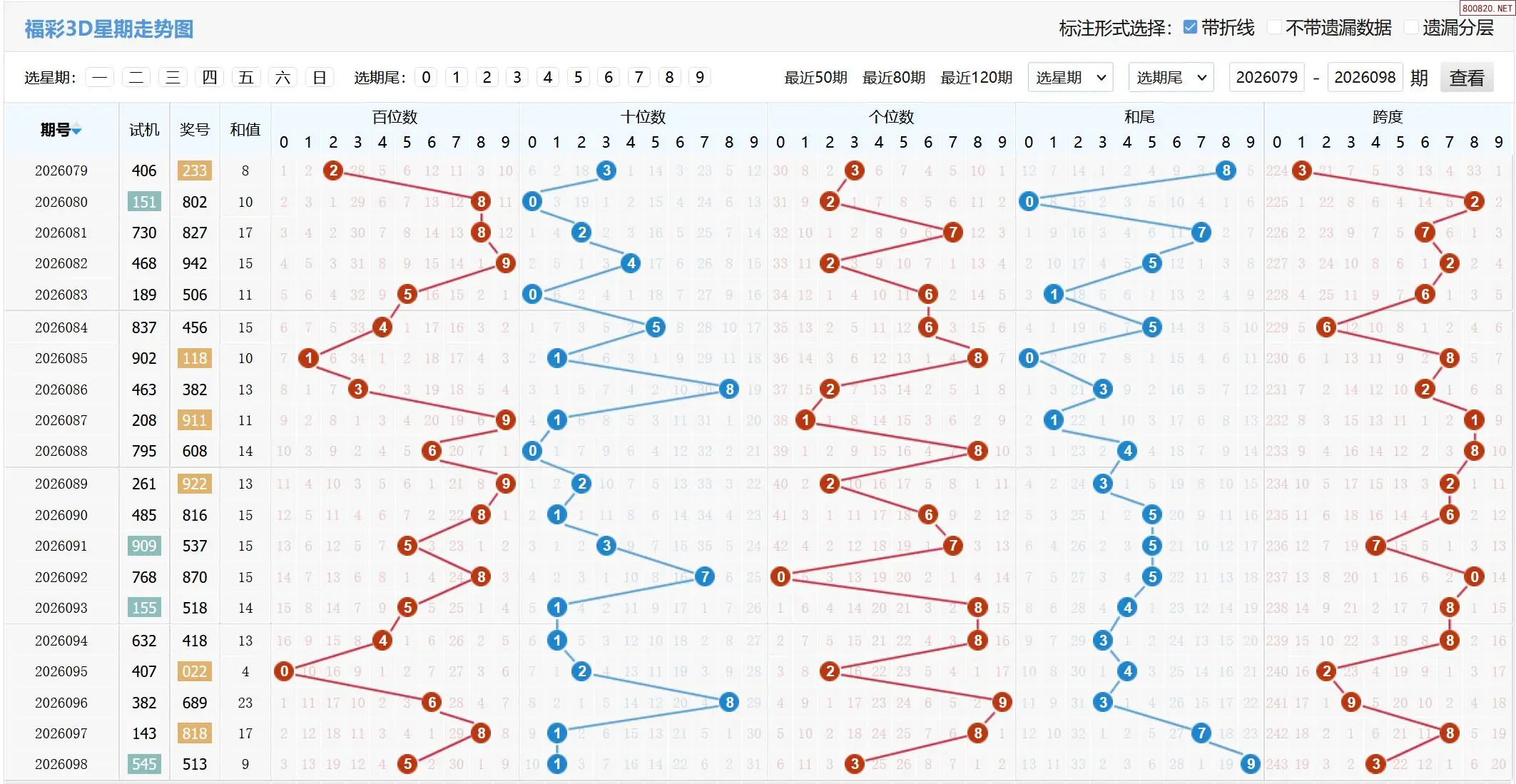 2026099期福彩3D基本走势图如下: