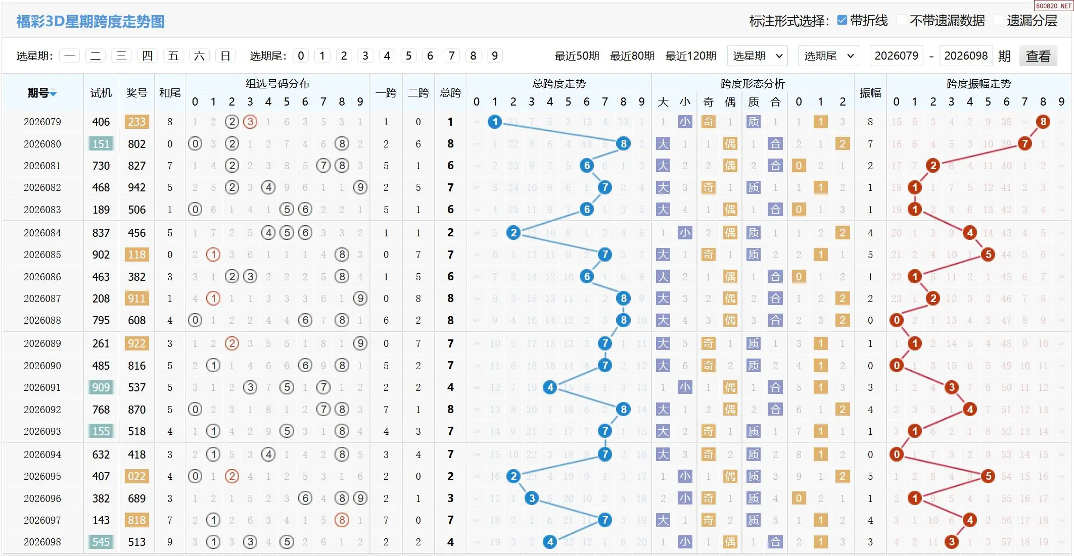 2026099期福彩3D跨度走势图如下: